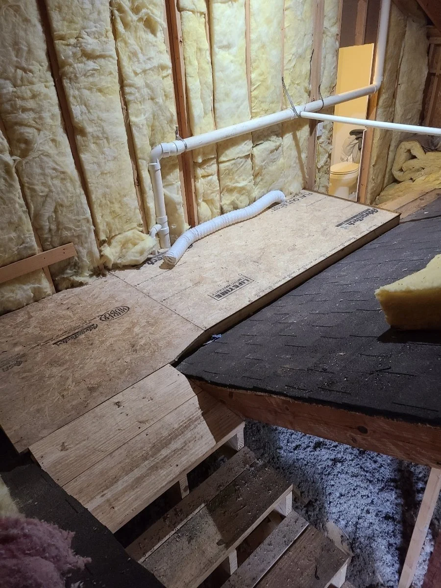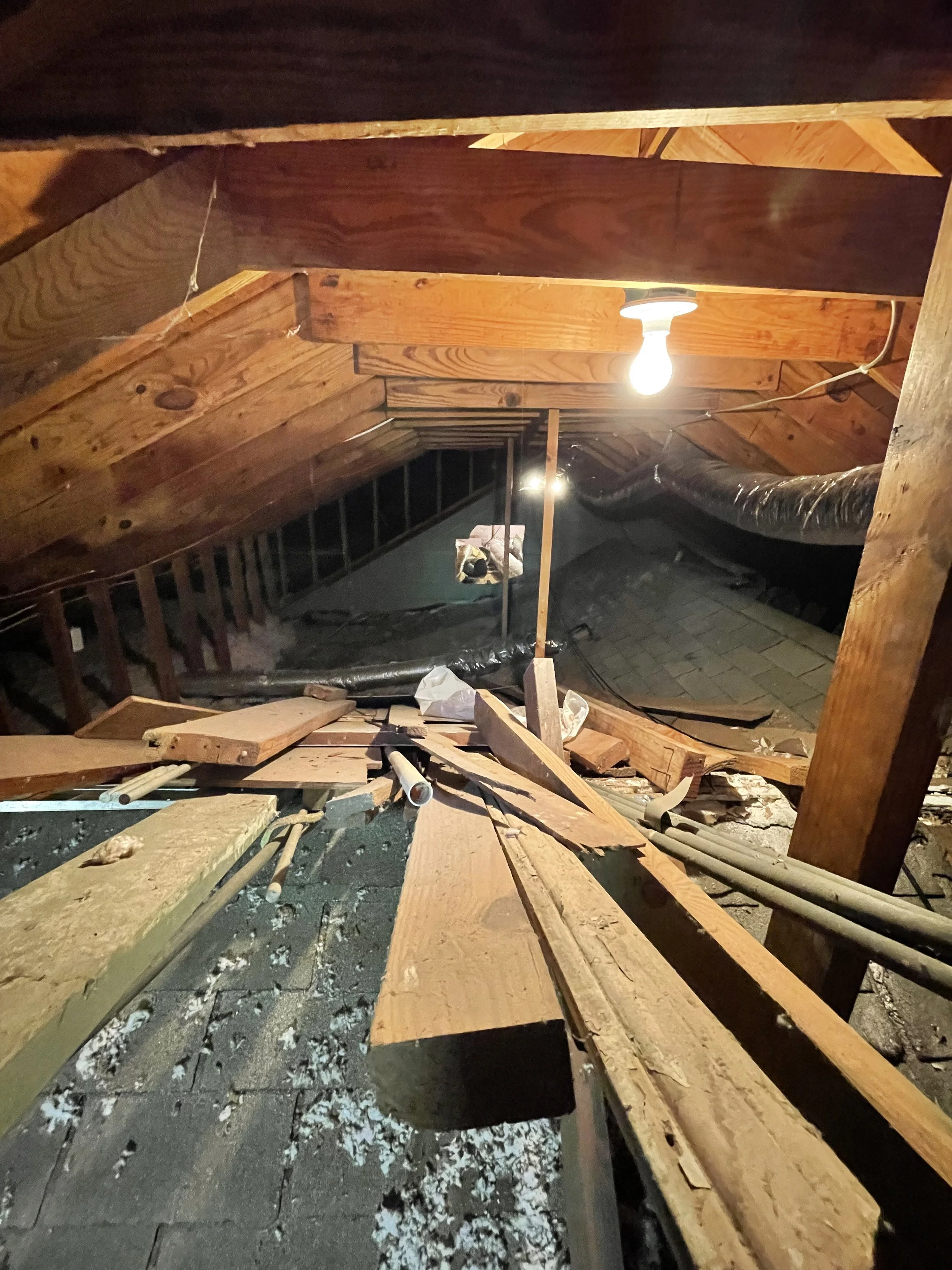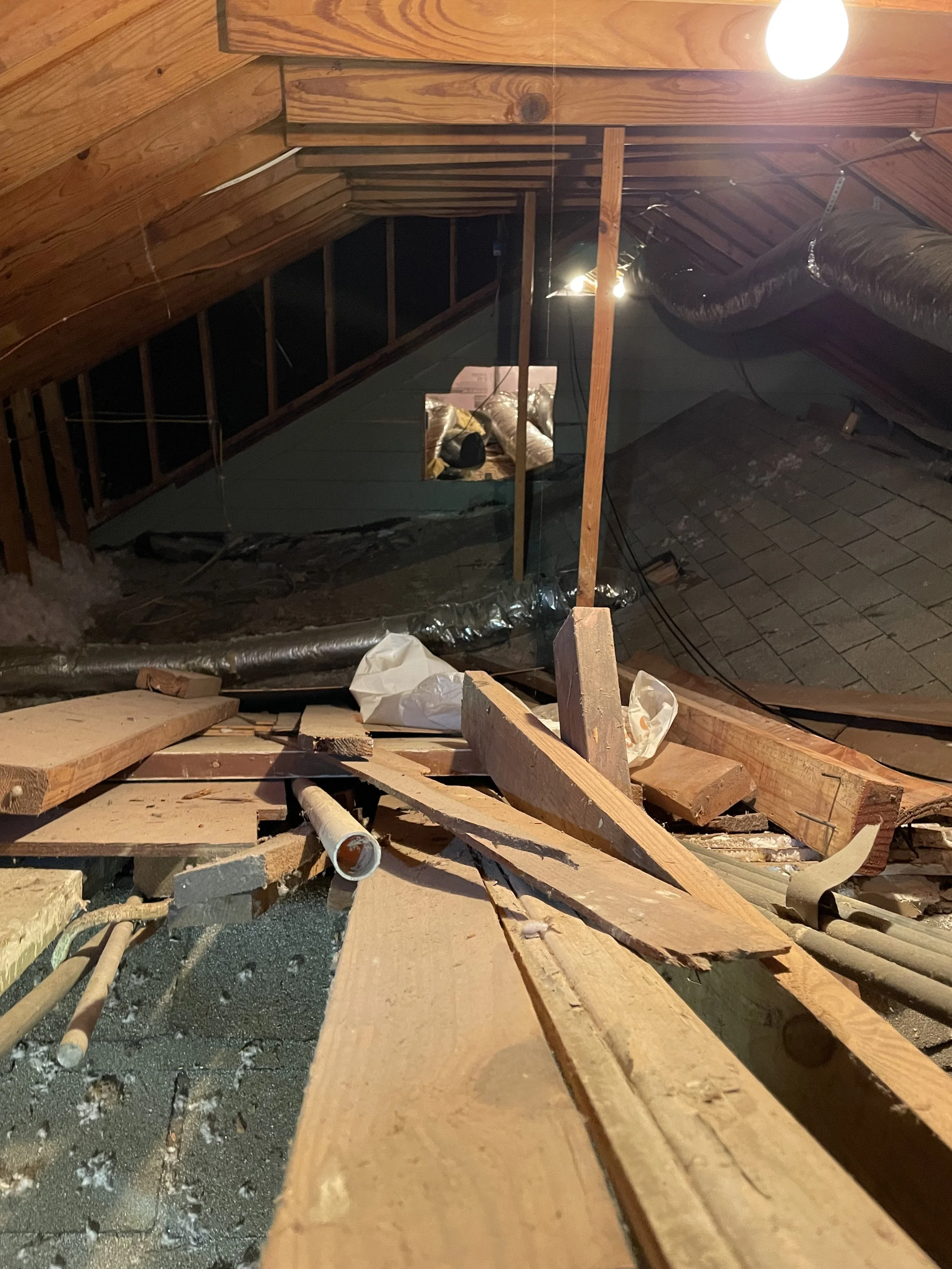 Wow our team did a great job on this project. Home owner had a mess in their attic and wanted us to clean it up and give them some storage space. Incase you were wondering yes that is a roof line in the attic. That was from a remodel!